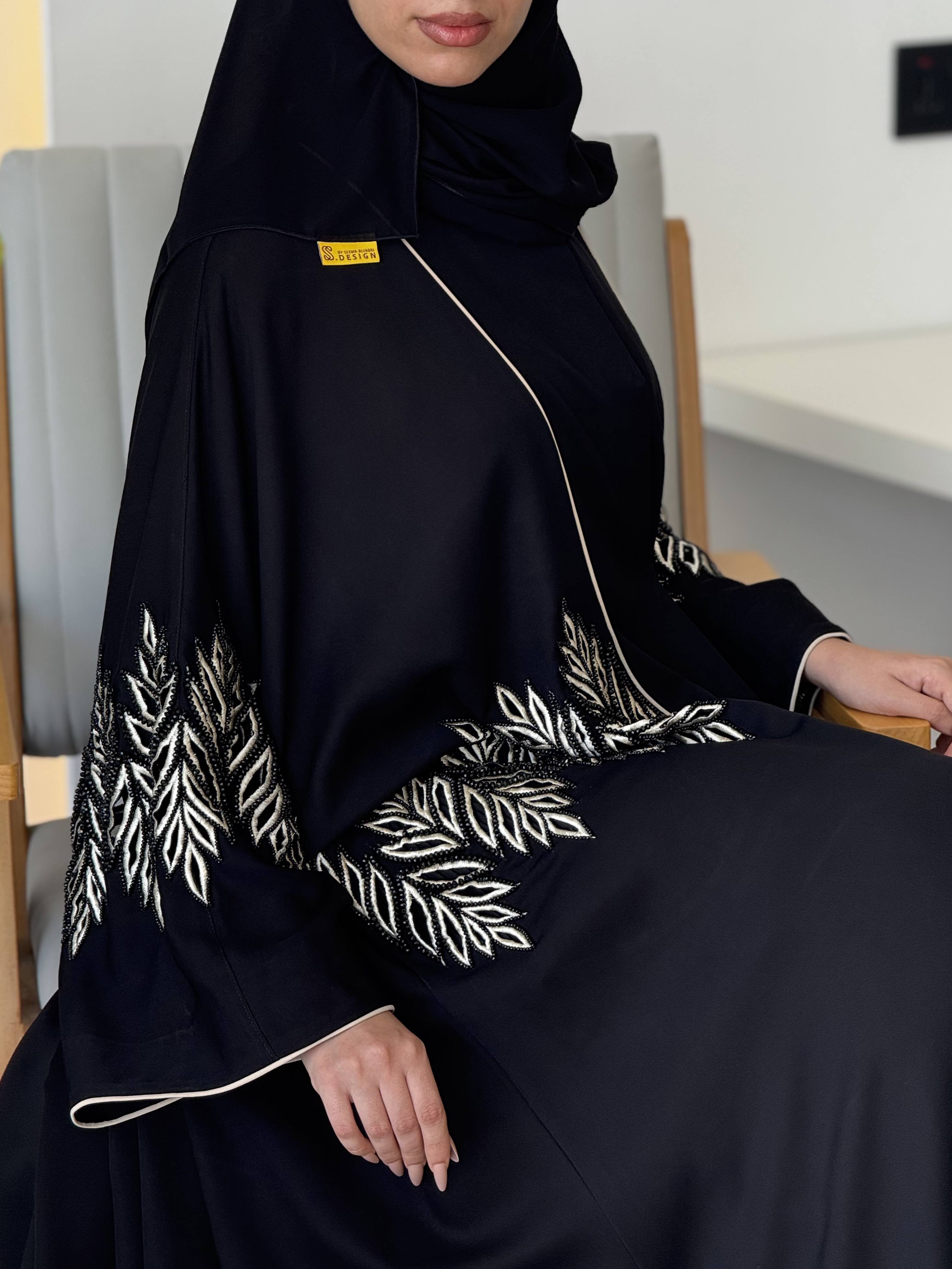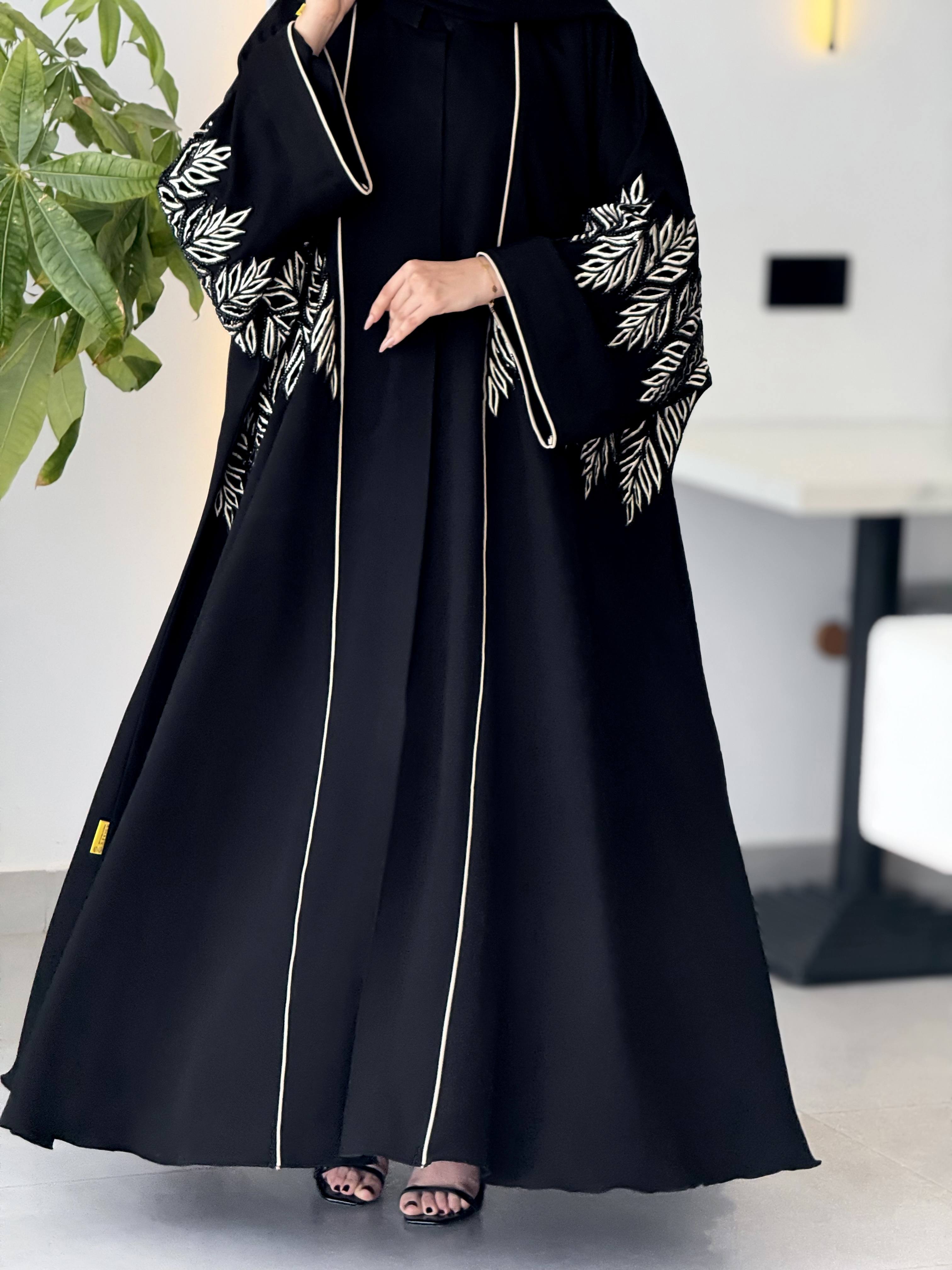 عباية بقصة بحريني كلوش ( واسعة ) قماشها كريب سعودي ❤️‍🔥 تتميز بالشغل الكثيف تطريز وشك خرز أسود ❤️‍🔥 الشيلة سادة ❤️‍🔥 ممكن تغير لون التطريز للأسود ❤️‍🔥 مُلاحظه كل العبايات تجي مع شيلتها 🔥