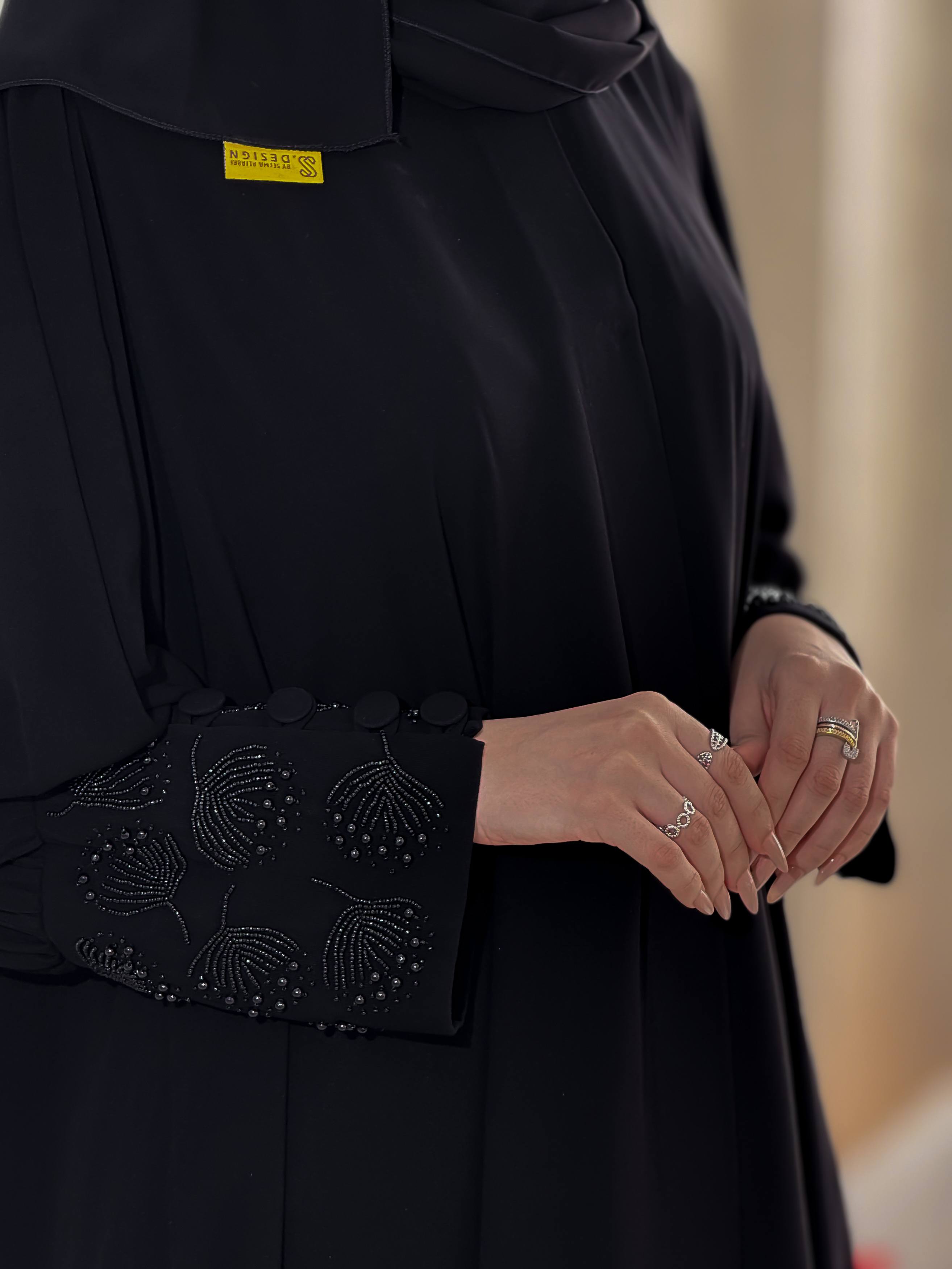 قصتها كلوش ❤️‍🔥 قماشها سواده فاحم وناعم ومنسدلتتميز بالشك الأسود بنقشة جميلة معطنها فخامة ❤️‍🔥 الشيلة فيها شك خرز خفيف على طرف الشيلة ❤️‍🔥 مُلاحظه كل العبايات تجي مع شيلتها 🔥